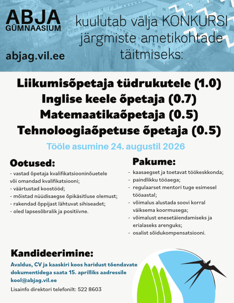 Pakume tööd Abja Gümnaasiumi alustava õpetaja toetamise kord Mulgi valla alustava õpetaja toetuse andmise kord